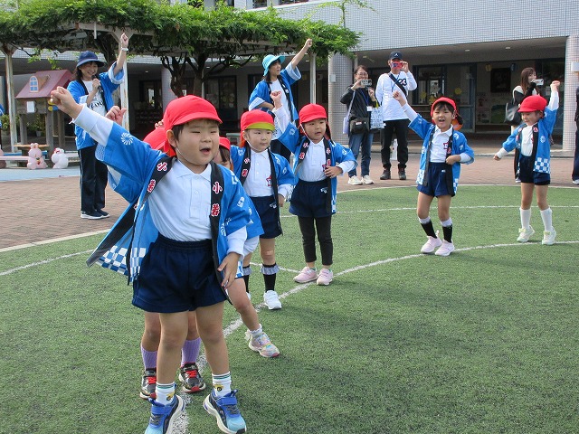 まずは、お外でアンパンマン音頭を元気いっぱい踊りました。