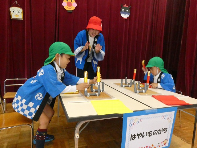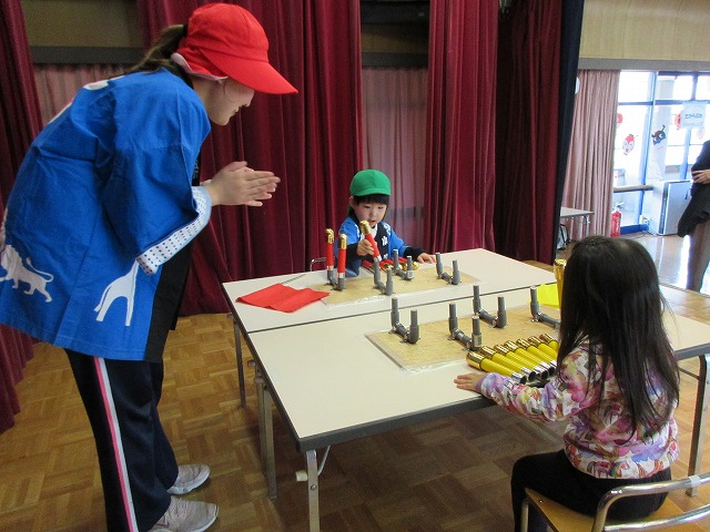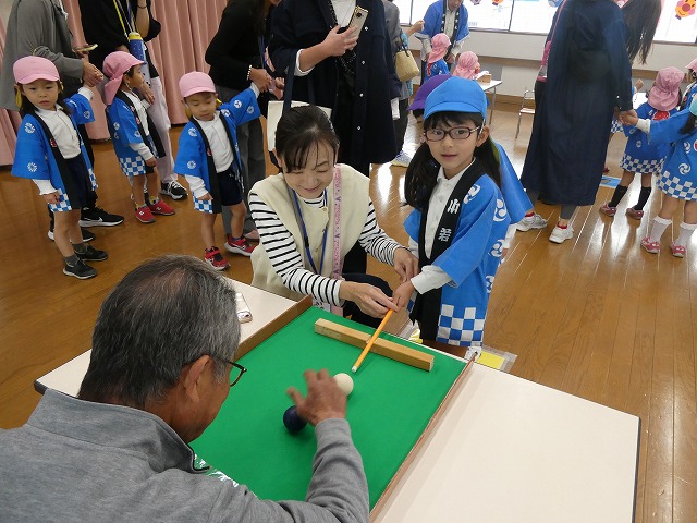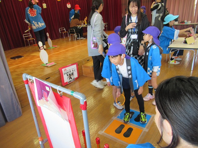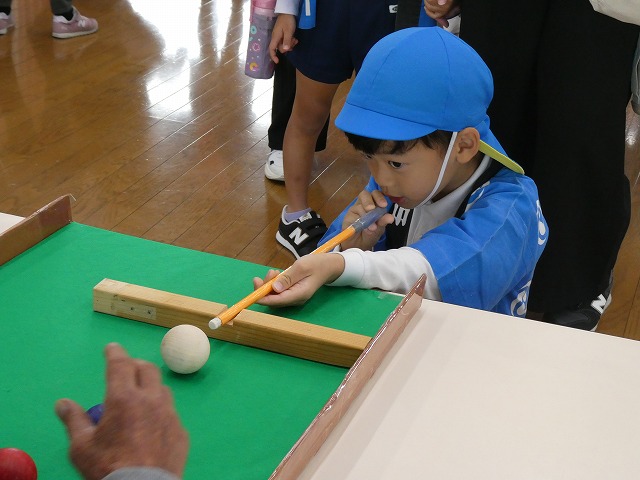 その後は、ワニワニパニックやわなげ、ビリヤードなど手作りのゲームがスタート!佐藤先生のアイデアいっぱいのゲームは、どれも大盛況で子どもたちは大盛り上がりでした。