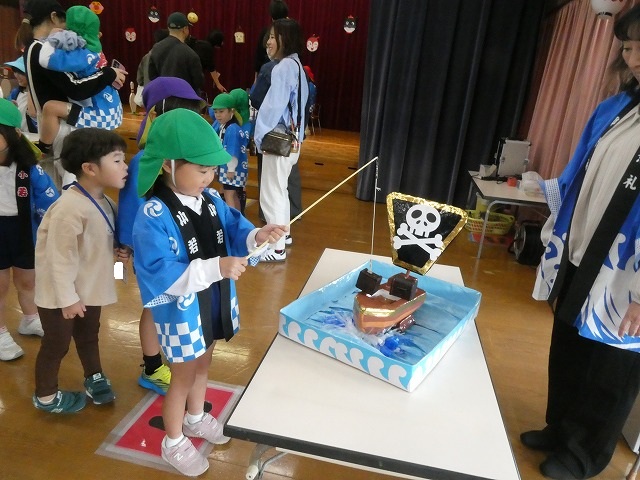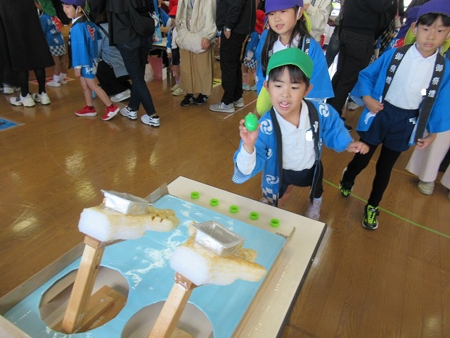 子どもたちが楽しみていた縁日ごっこがありました。提灯や飾り付けをして幼稚園はお祭り一色です。