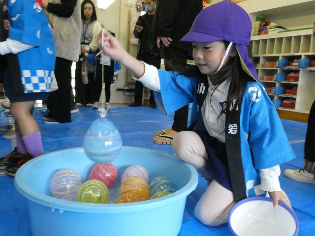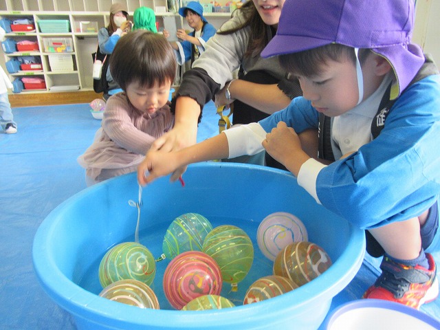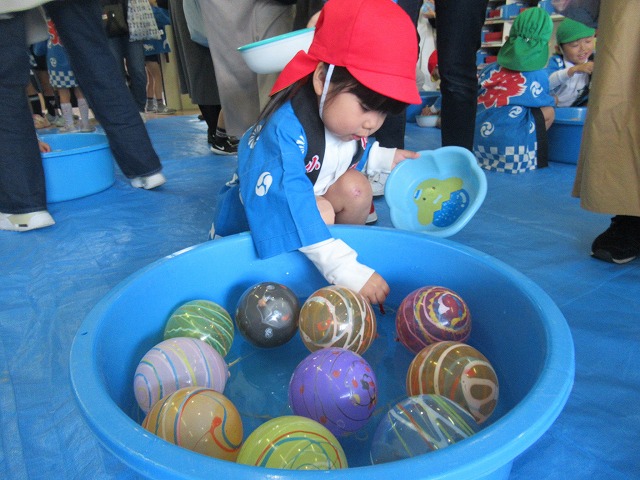 最後はヨーヨー釣りでは「どの色にしようかな?」と目をキラキラさせていました。好きな色のヨーヨーをお土産にもらって大満足の時間を過ごしました。