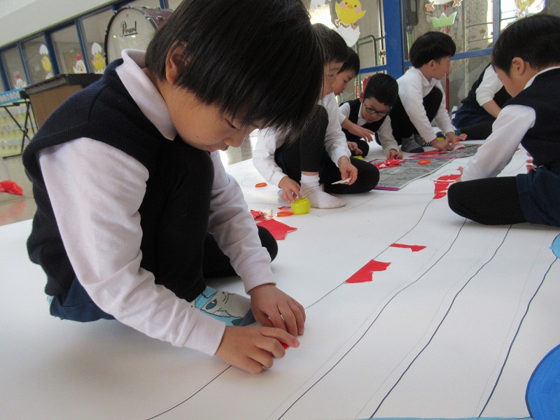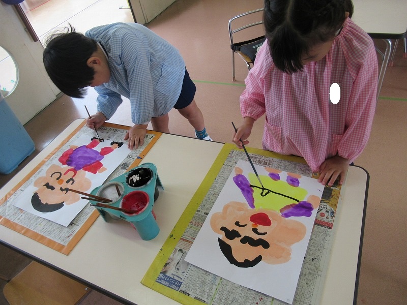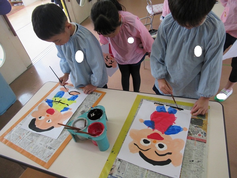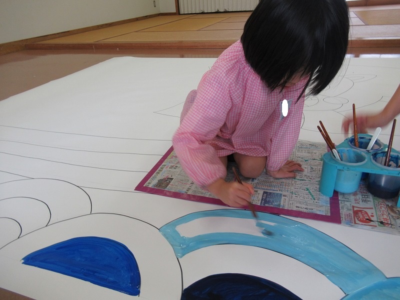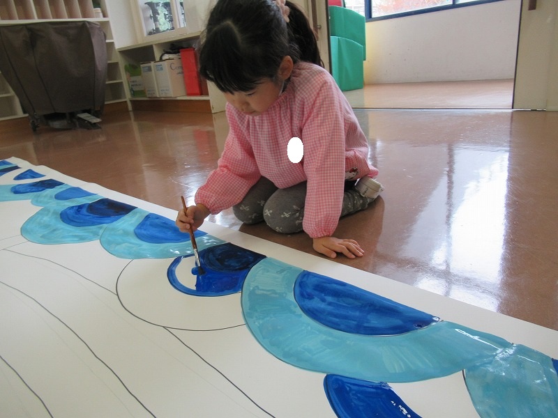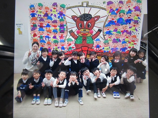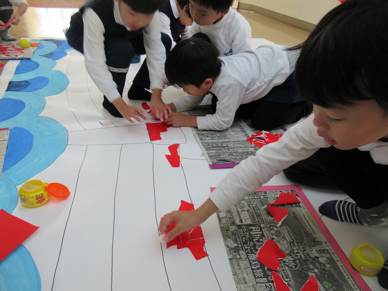 干支を題材にした共同製作画ということで、年長組の園児全員で製作に取り組みました。