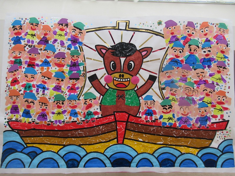 「にっこりえびすと馬の幸せ船!しゅっぱーつ!!」という素敵な作品が出来上がりました。