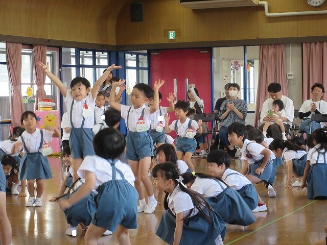 各学年の素敵なお遊戯のプレゼントやお家の方とふれあい遊びをしました。