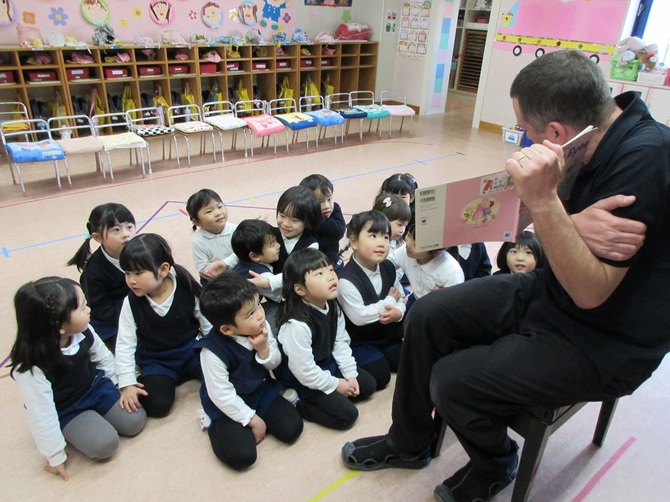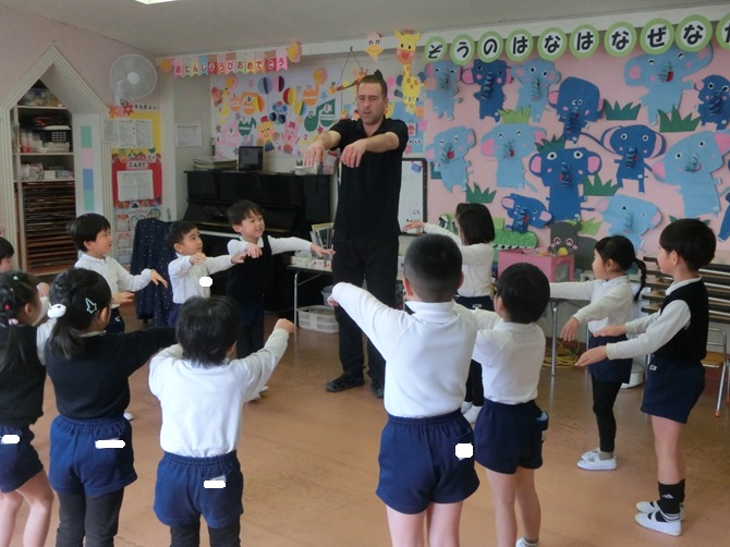 英語のロブ先生と触れ合える時間がとっても楽しく子どもたちも大好きです。