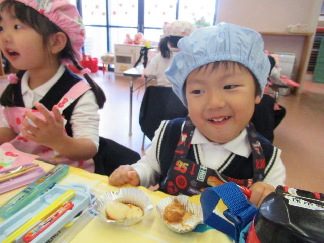 たくさん歩いた後は楽しみにしていたお昼ごはん!「お腹が空いたよー」と、おにぎりとおやつをとても喜びながら嬉しそうに食べていました。帰りには疲れ切っている様子でしたが、最後まで頑張って歩き、無事帰ってくることができました。