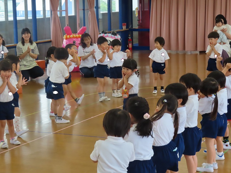 各学年おゆうぎのプレゼントをしたり、保護者の方と誕生児さんとで、