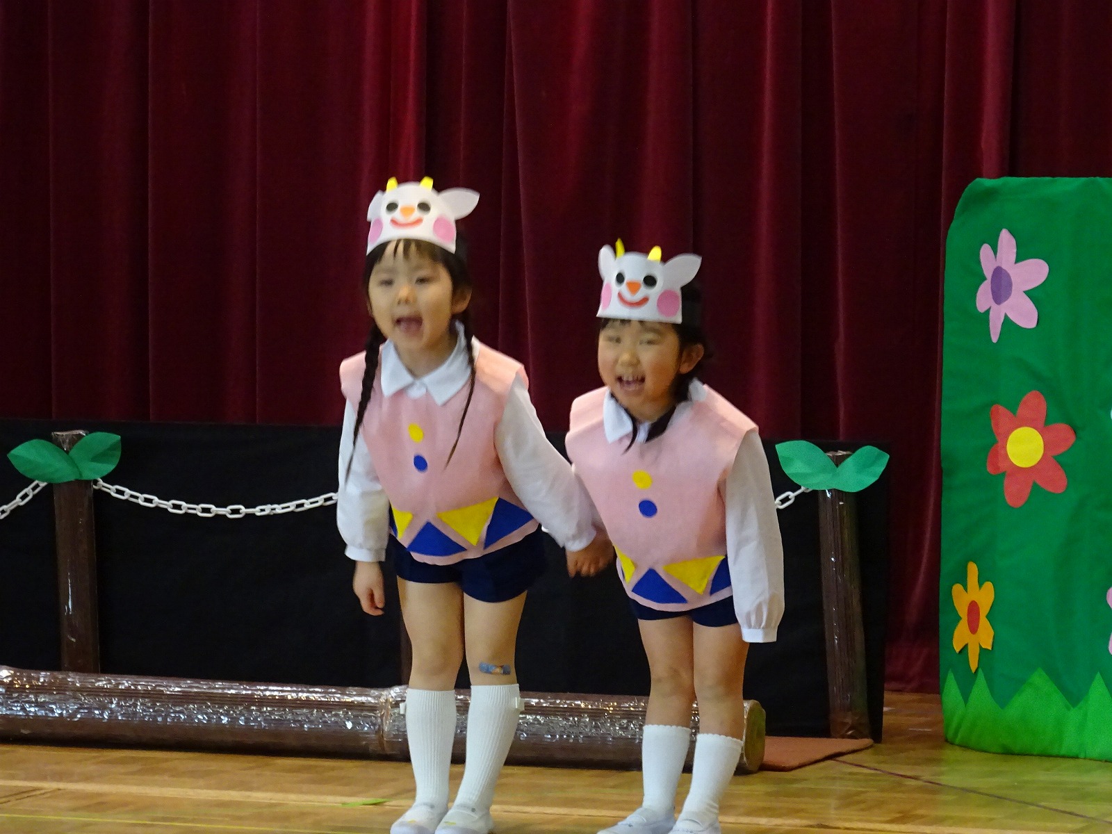 おゆうぎのプレゼントは年少ぐみ『グーチョキパーでパンプキン』、年中ぐみ『モグモグモグ』、年長ぐみ『そろそろそうだん』でした。