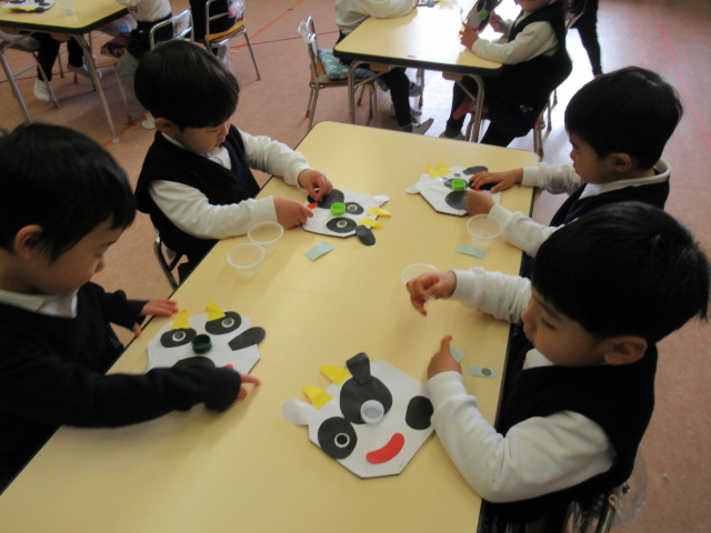 今月は年少・年長ぐみの会、年中ぐみの会に分かれてお祝いしました。