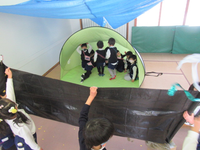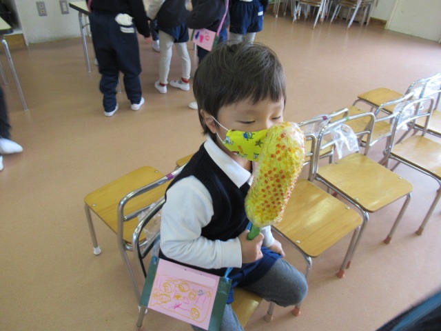 副園長 乾先生のお話「こぶとりじいさん」、ぺープサート「ブースカパーティー」を見てみんなで楽しい時間を過ごしました。
