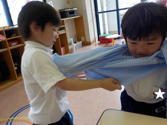 先生達から「かたっぽちゃんとかたっぽちゃん」のペープサートの