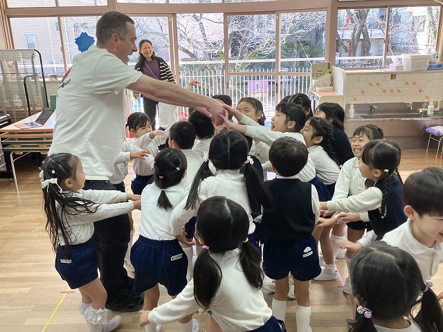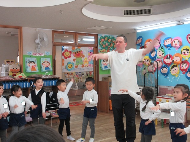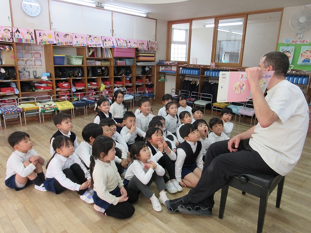 みんなが大好きなロブ先生とABCマットを使ってお歌をうたったり、絵本を読んでもらったり、ビンゴをして楽しい時間を過ごしました。