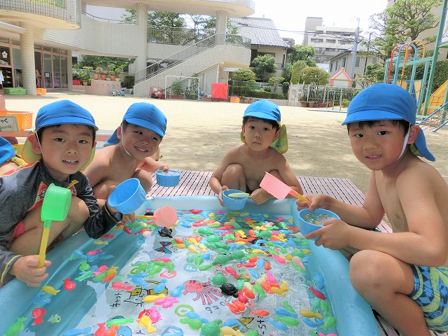 バスに乗ってスイミングに行きました。初めはドキドキしていた子供達も「お水気持ちいい~」と、バタ足をしたり、コーチに支えてもらいラッコのようにぷかぷか浮いたり、いろいろなことに挑戦しました。