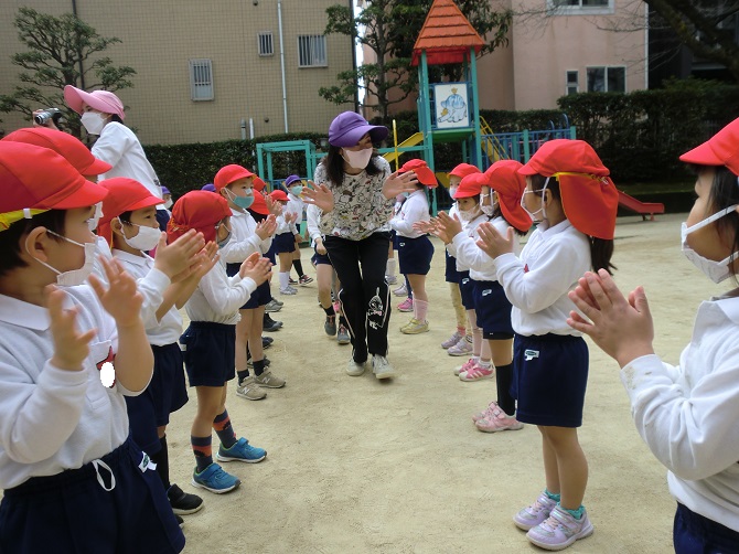 おゆうぎのプレゼントや、おうちの方と一緒にするふれあい遊び、副園長先生のお話や手品を楽しみました。