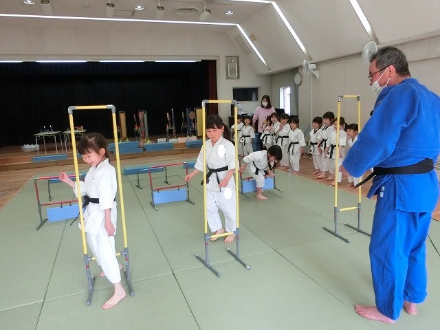 年長組は,いい声の出し方や、太鼓のバチの持ち方を教わりました。