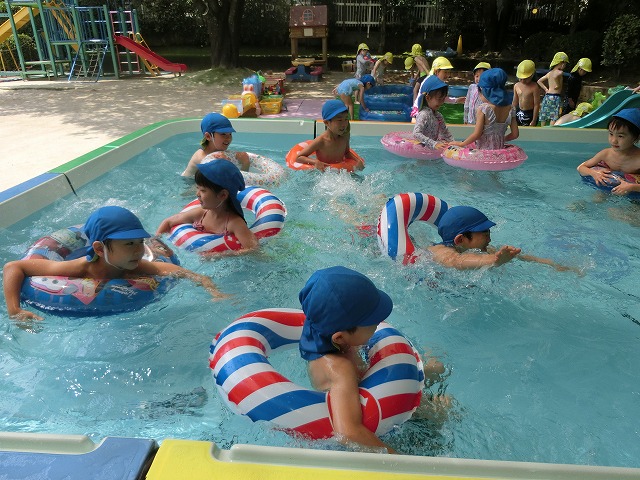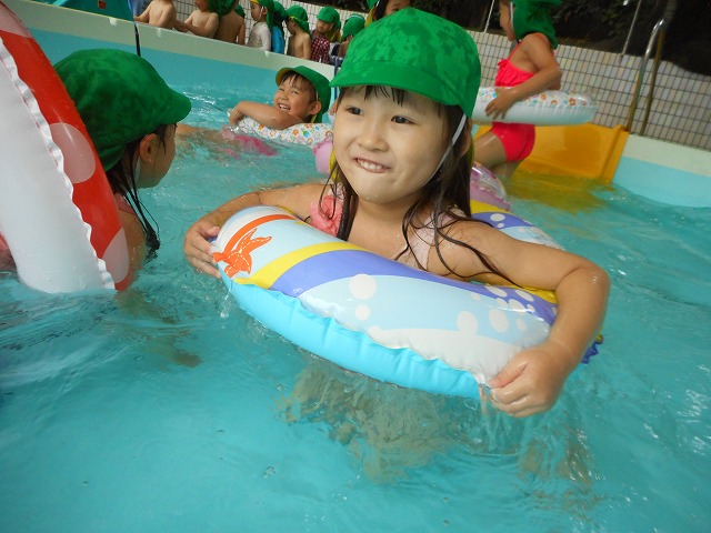 大きいプールでどんなことをするのかな?とドキドキ・ワクワクの子供達。