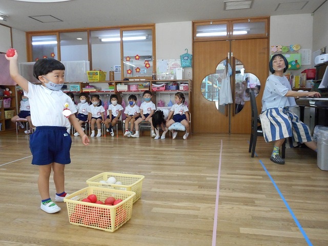 お遊戯を踊ったり、お家の方と一緒にふれあい遊びをしたり、副園長のお話や先生対決を楽しみました!