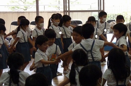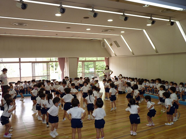 クマ歩きや、後ろクマ歩きをしたり、二人組になってコロコロ転がったり、いろいろな動きを楽しみました。
