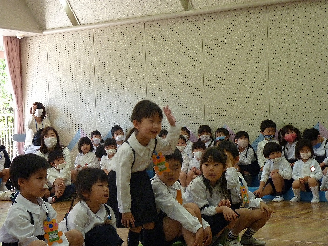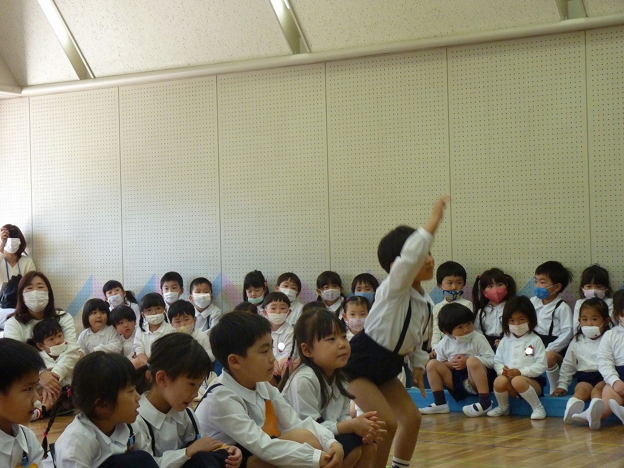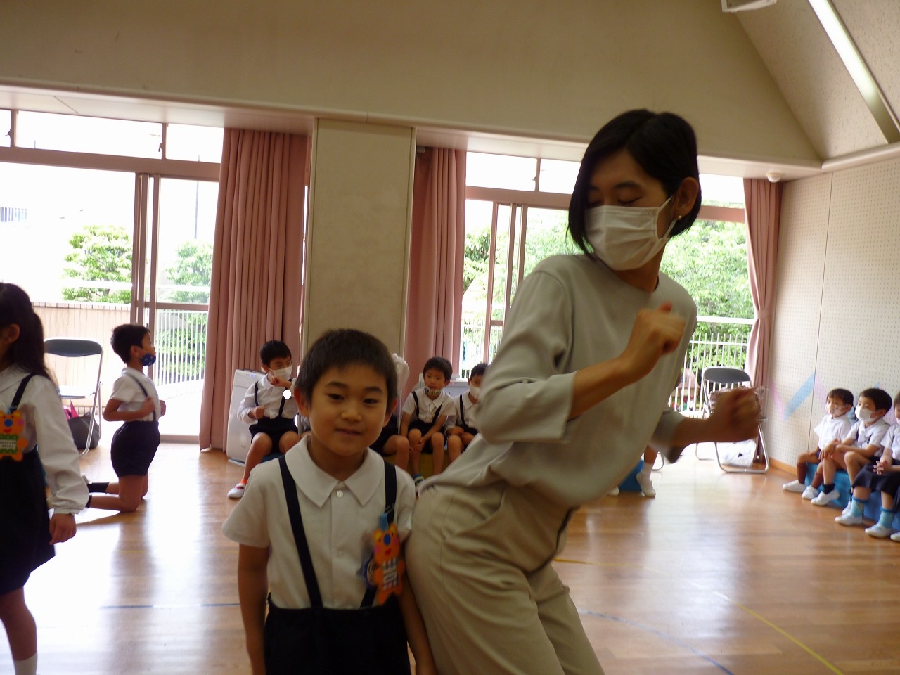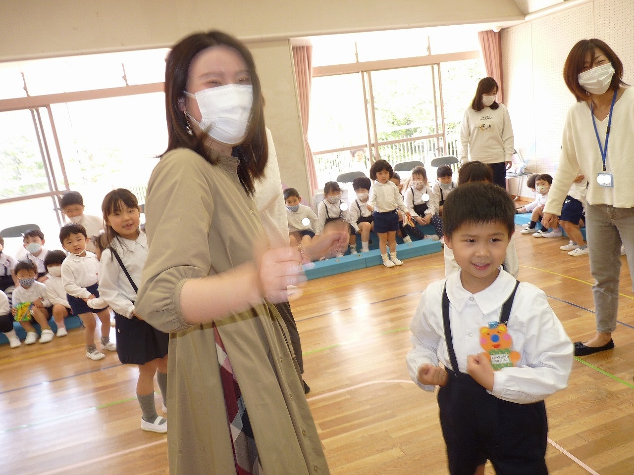 お遊戯を踊ったり、お家の方と一緒にふれ合い遊びをしたり、副園長先生のお話や先生たちの手品を楽しみました。