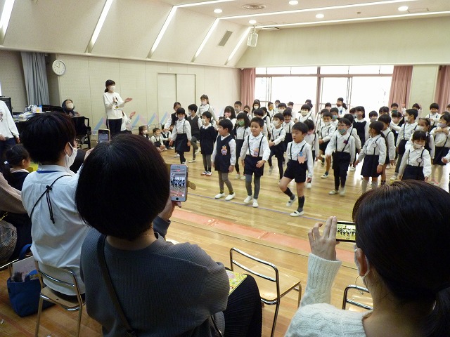 お遊戯を踊ったり、お家の方と一緒にふれ合い遊びをしたり、副園長先生のお話を聞いたり、みんなで楽しい時間を過ごしました。