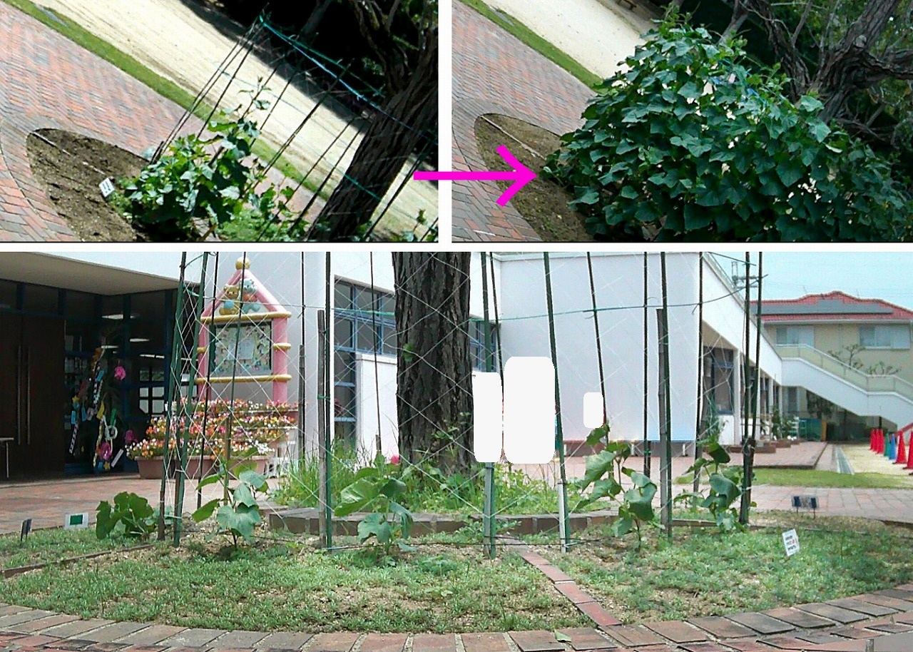次にお茶室に移動して鑑賞の時間を持ちました。まずは、カメラで撮り続けたきゅうりの成長の様子を見ました。自動撮影で7月から8月の1ヶ月間同じ場所で撮り続け撮影した写真をつなぎ合わせてコマ送り動画を作りタイムラプスの手法で短く10秒にまとめたものです。小さかった芽がぐんぐん伸びて葉っぱが大きくなる様子がよくわかります。「緑が増えた」「つるもでてた」「急に大きくなった」など、気付いた意見を述べながら鑑賞しました。他にも昨年のあさがおが大きくなり枯れてなくなるまでの映像も見ました。