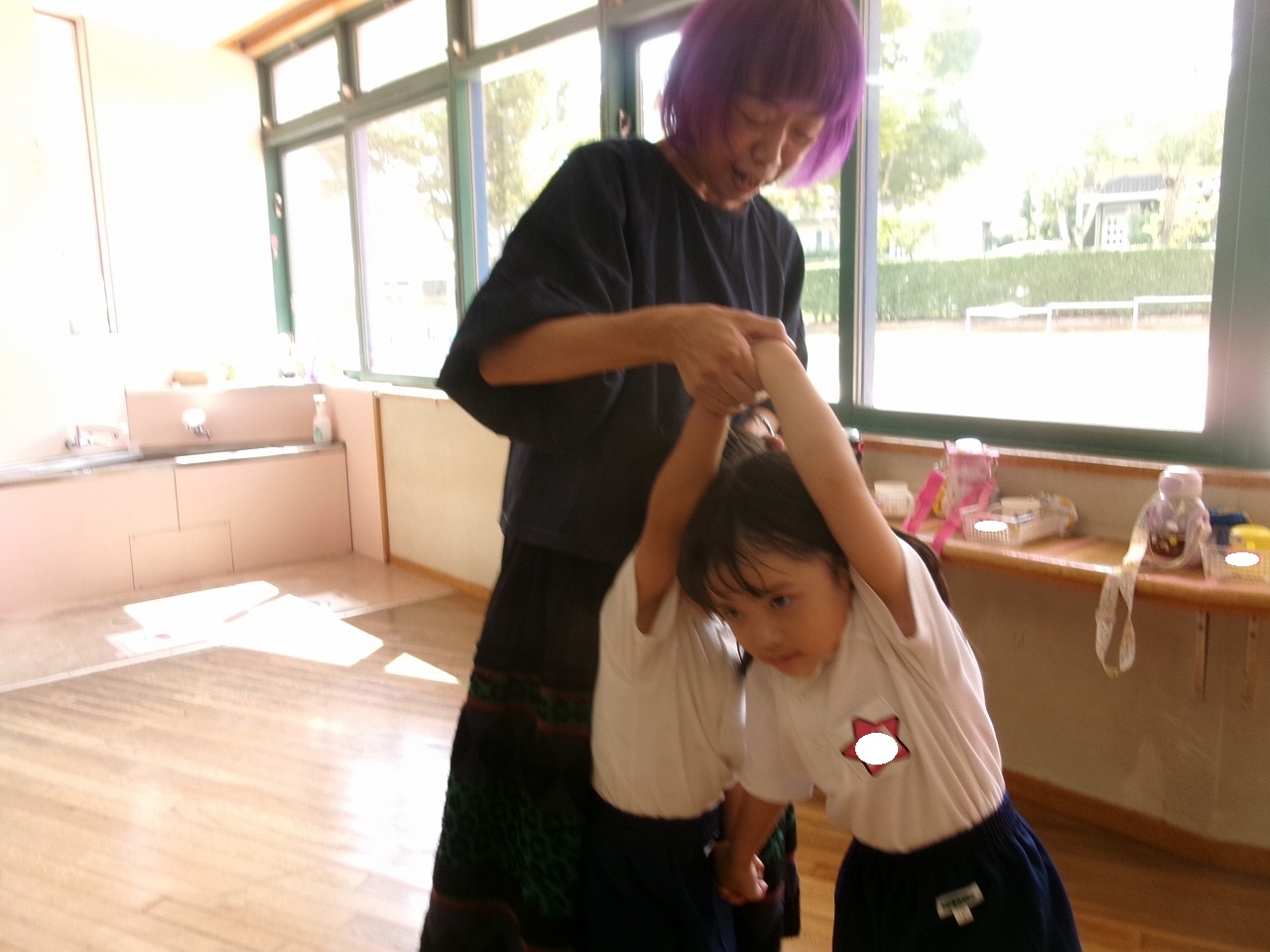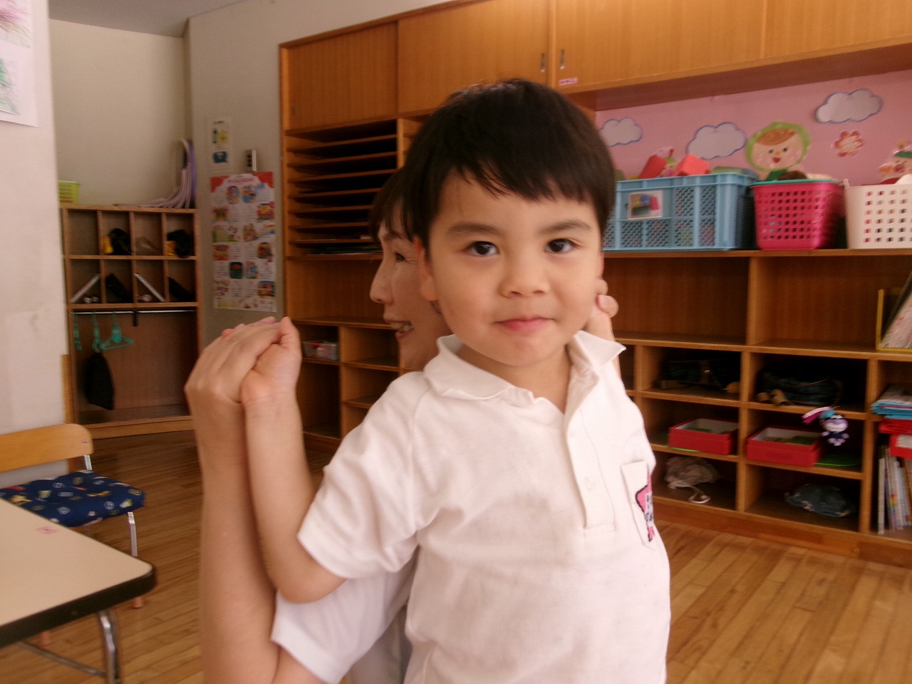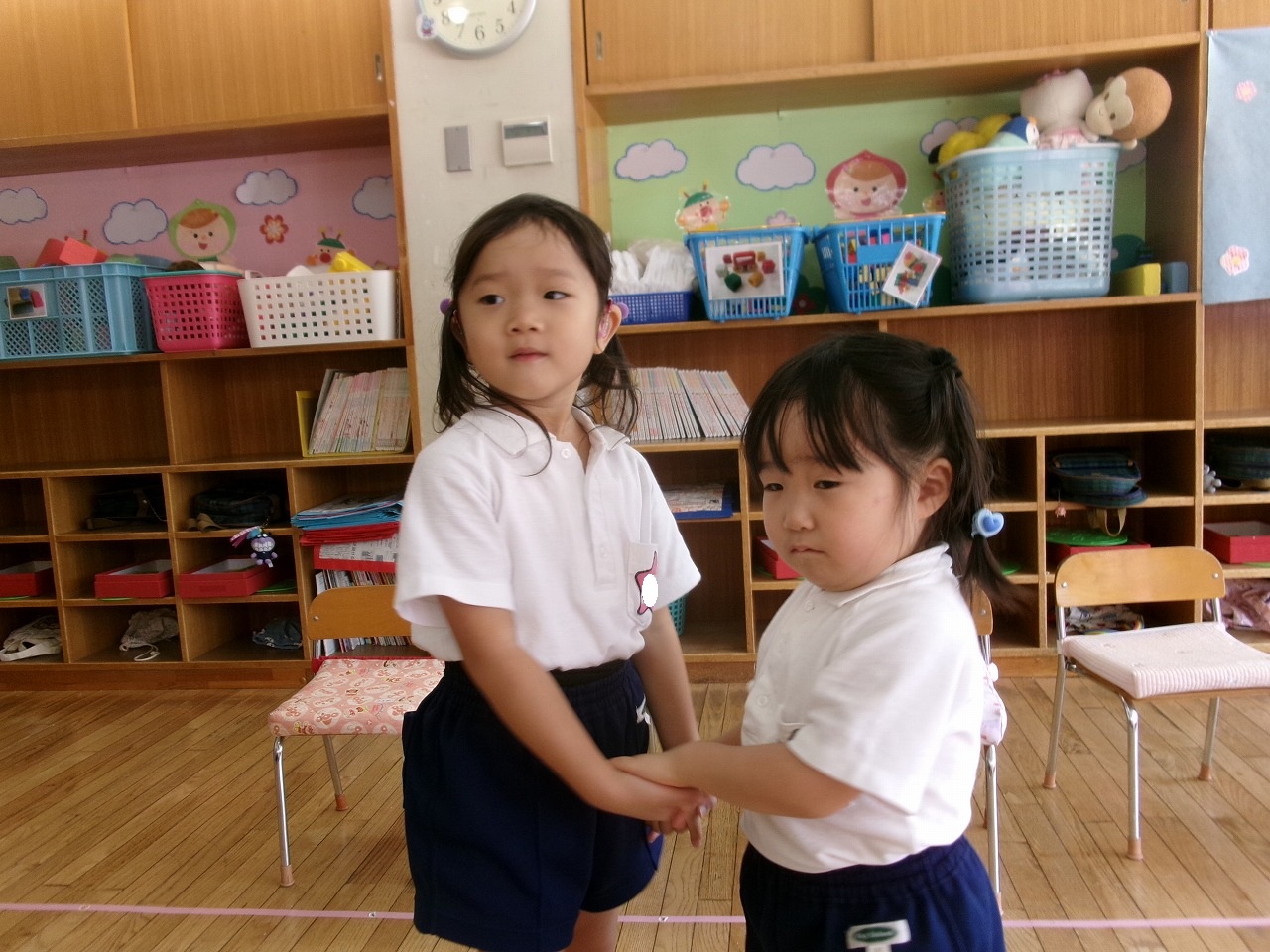 ももぐみはお友だちや先生と2人組になってなべなべそこぬけの歌に合わせて遊びました。
