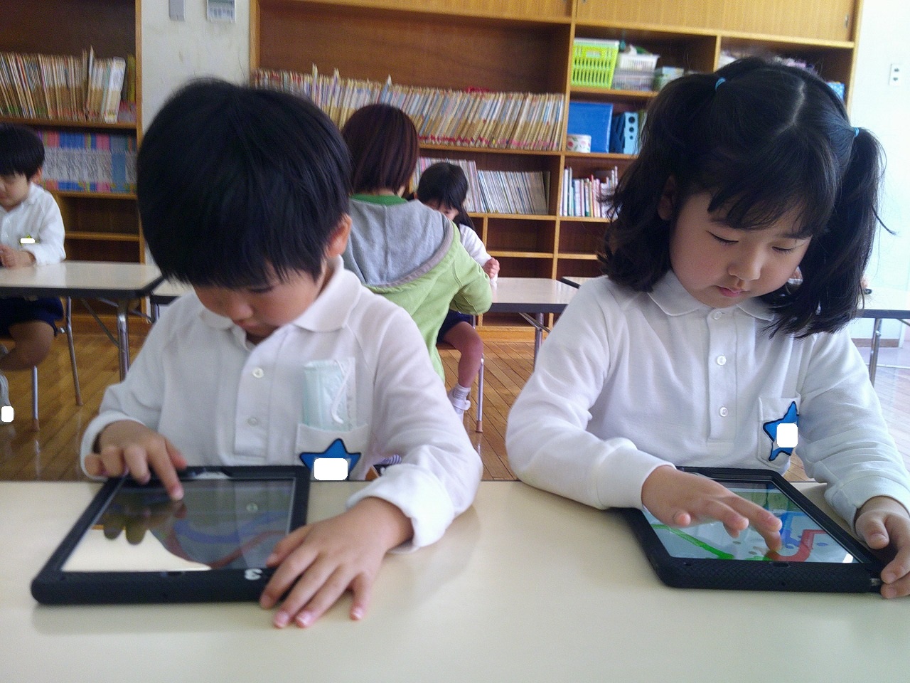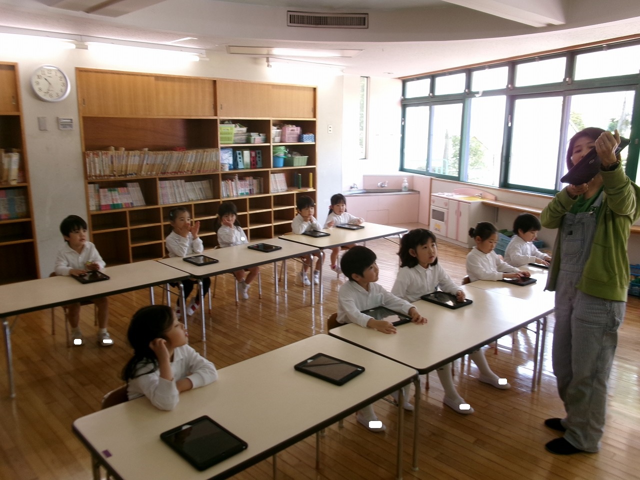 今日は、年長児幼稚園最後のiPad教室でした。年末に撮影した3つの映像を編集して完成した「ふしぎな動画」を、みんなで鑑賞しました。