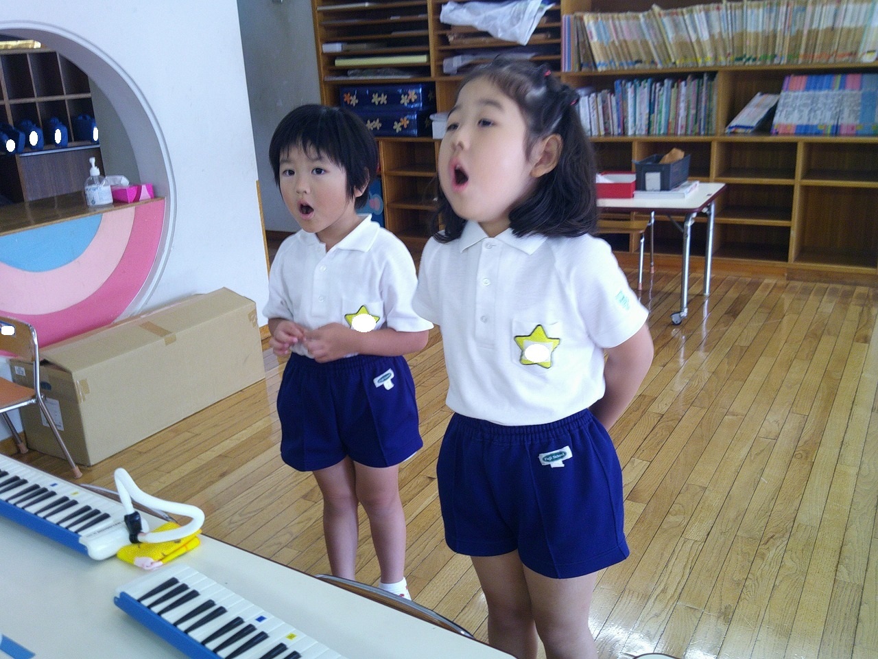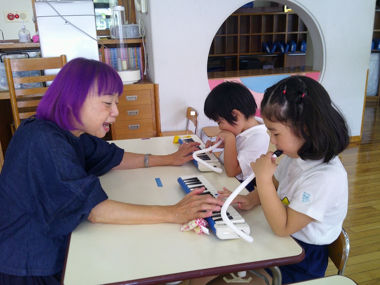 あやめぐみは鍵盤ハーモニカの練習を頑張っています。今は「かえるの歌」の練習をしていて、「お父さん指を引っ越して「ミ」の音を弾くよ」というところに苦戦しながらも、繰り返し練習している中で徐々に上手に弾けるようになってきました。