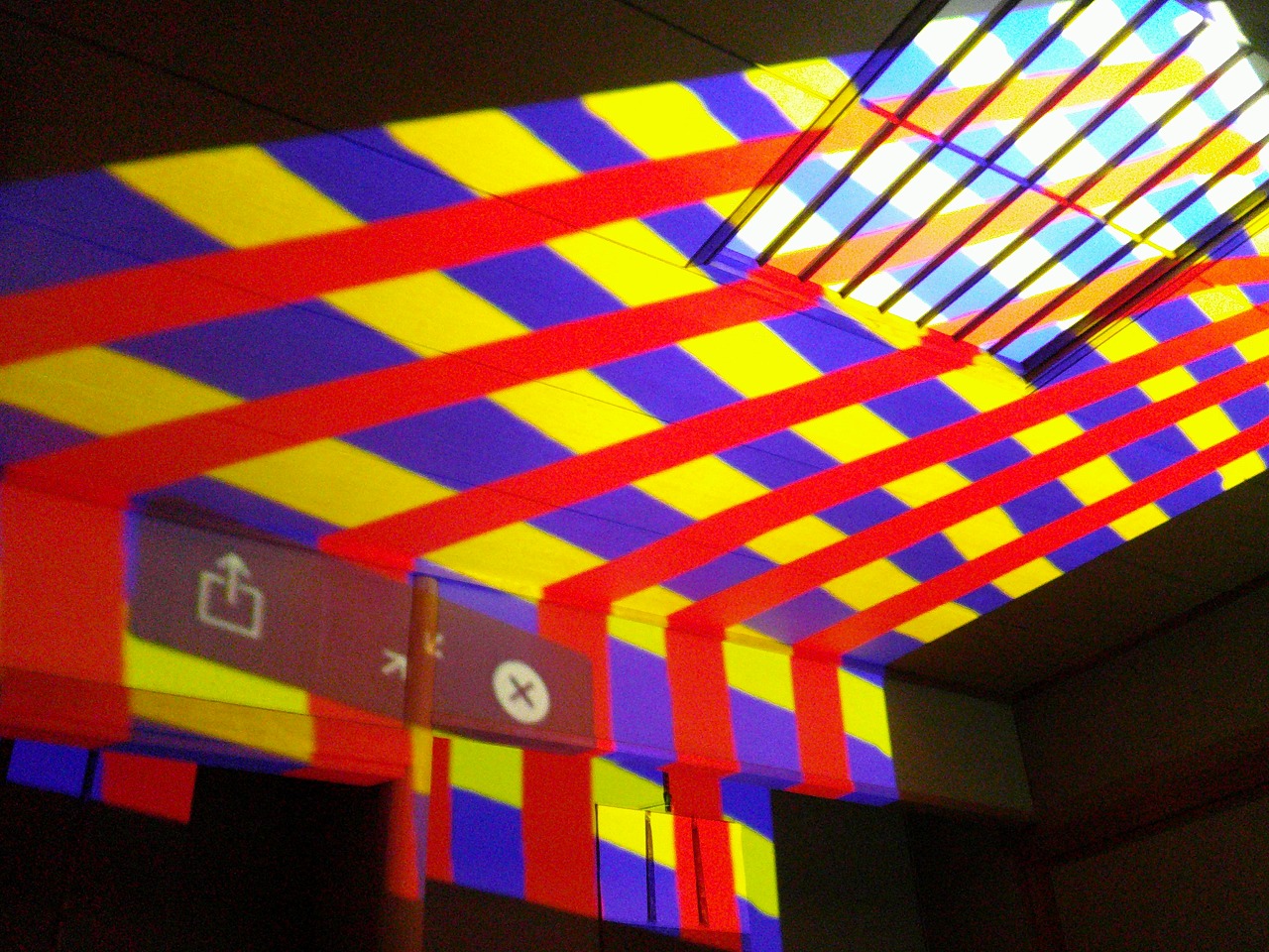 iPad教室の準備のためにお茶室の窓や入口を遮光カーテンで覆い暗い空間をつくりました。授業前に外遊びから帰ってくる途中にその様子を見ていたあおぐみのみんなは興味津々で「何をしてたの?」と会ってすぐに質問がありました。そこで今日は作品をつくった後、お茶室に移動して部屋いっぱいに映る大きな映像を見ることを伝えました。
