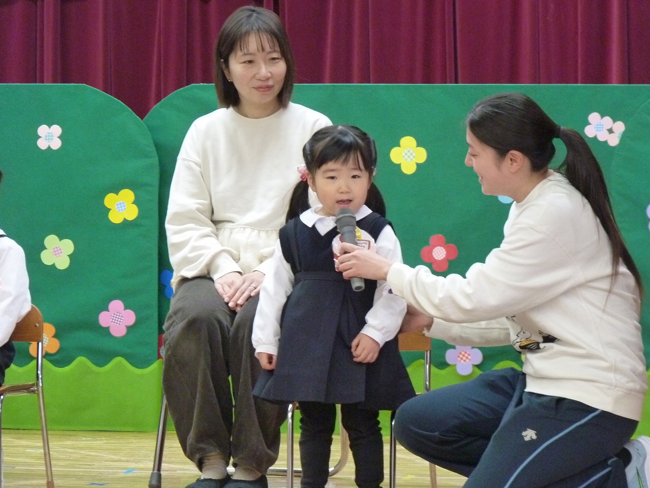 お誕生日のお友だちは、お名前を元気に言い、好きな食べ物や大きくなったら何になりたいかを発表してくれました。