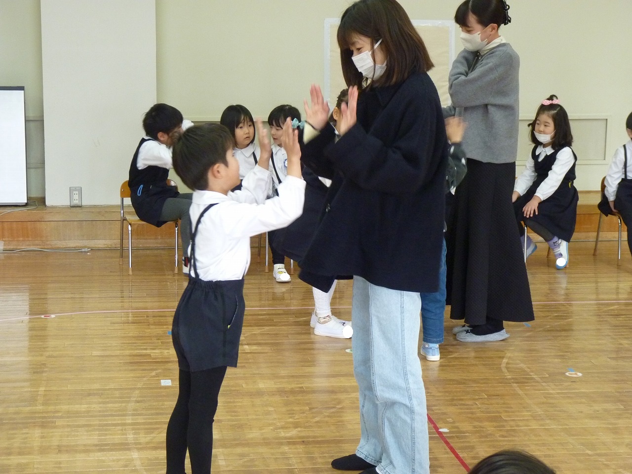 聞いたことを実践して「できた~!」「今上手にできてた?先生もう1回するから聞いてて!」と、楽しく練習しています。
