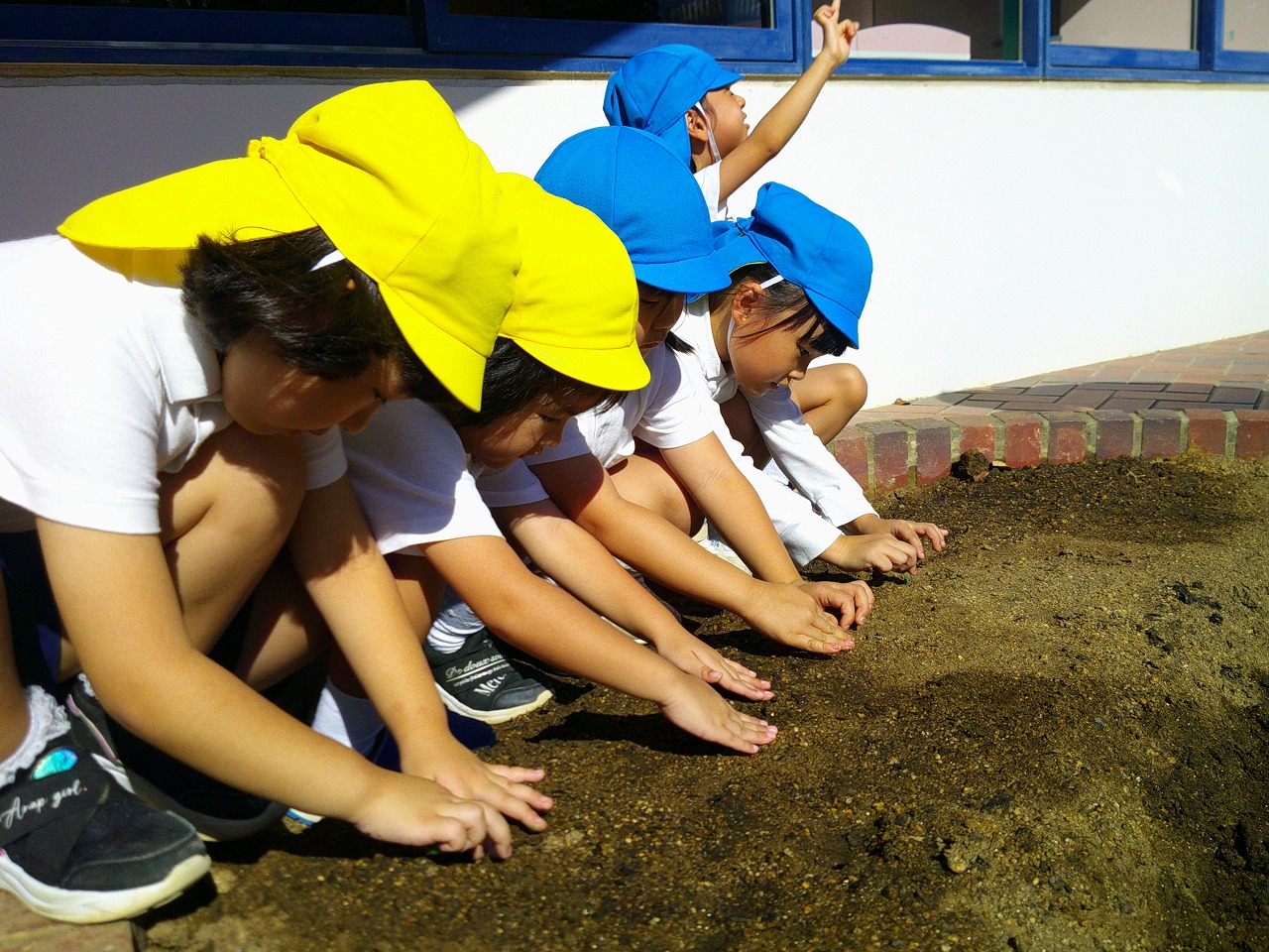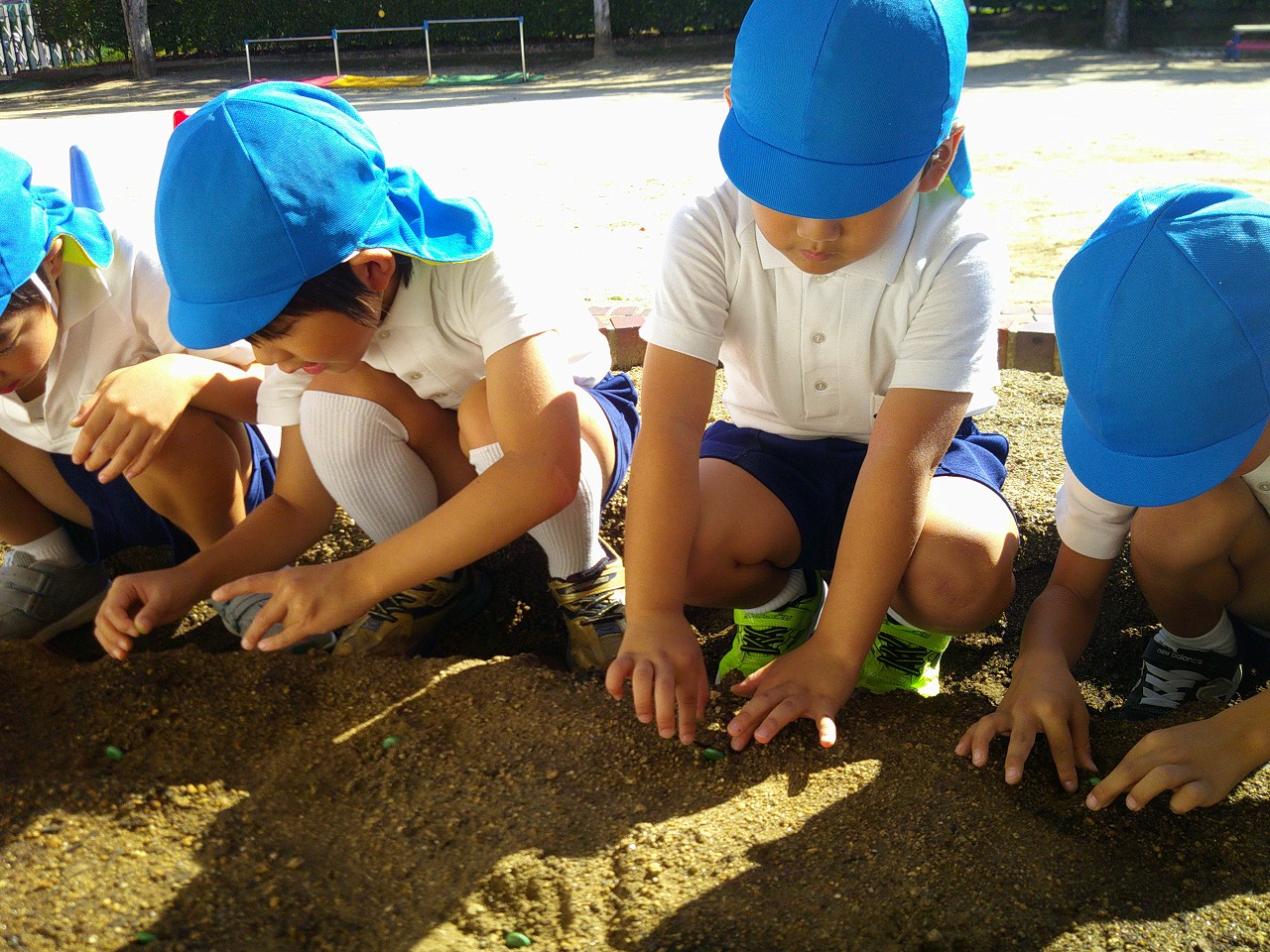 そらまめ、スナックえんどう、うすいえんどうの種もみんなで植えました。
