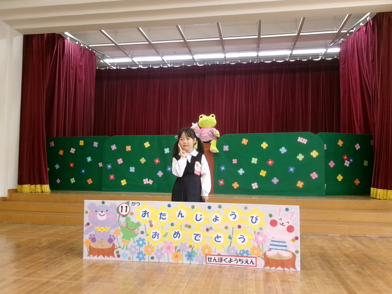 お誕生日のお友だちは好きな食べ物や大きくなったらを発表し、みんなからたくさんの拍手をもらいました。