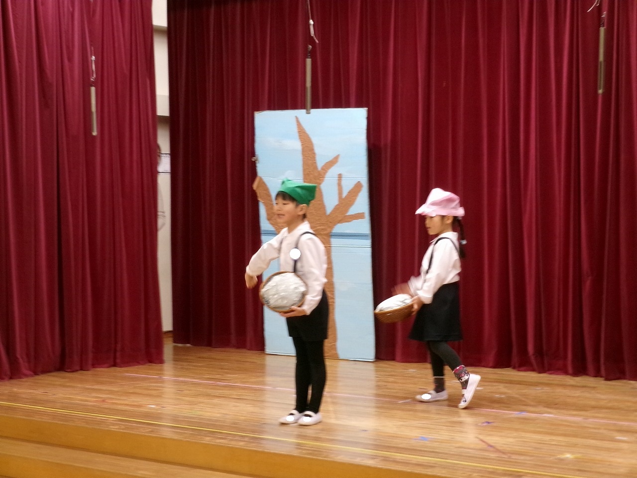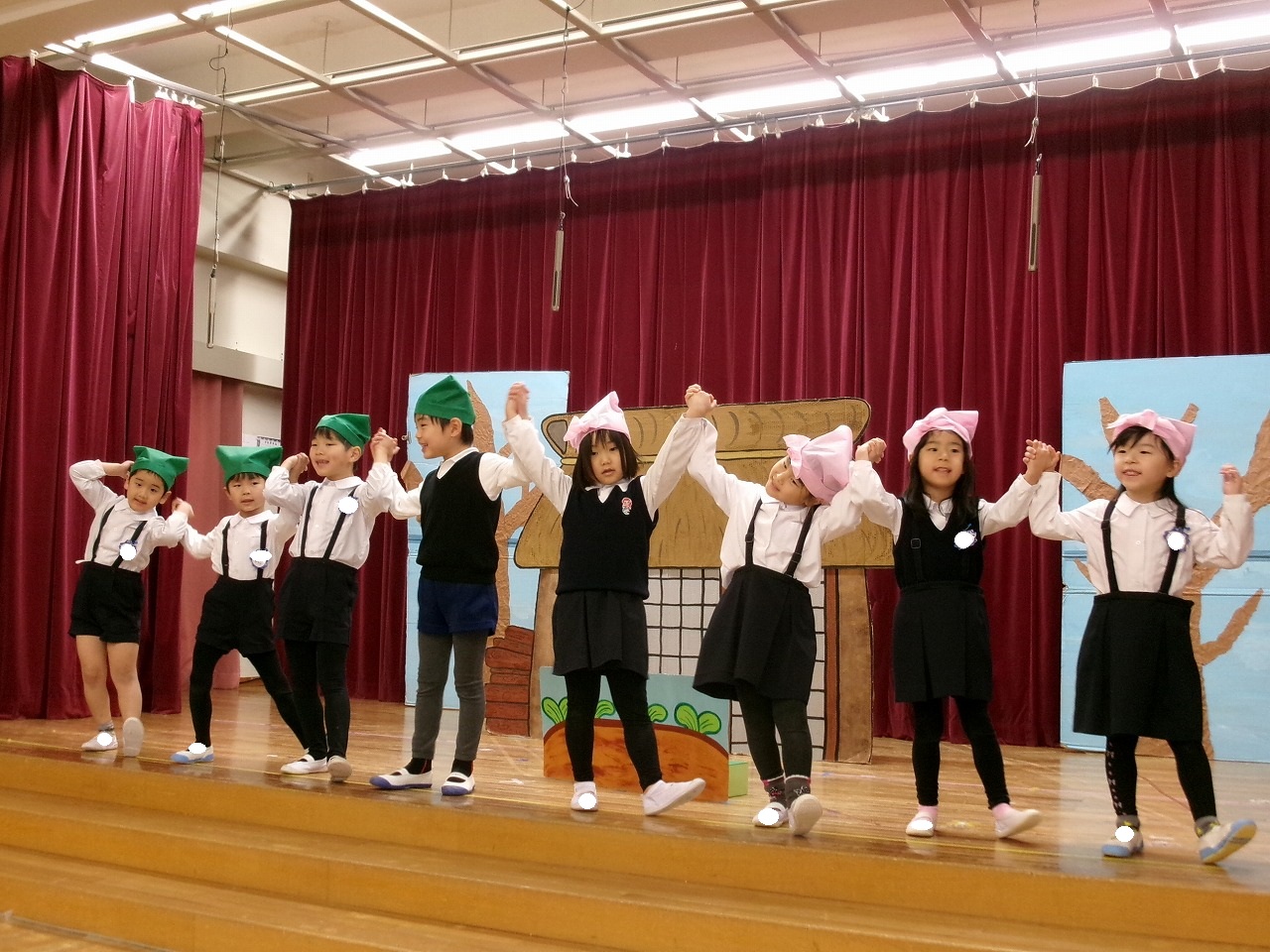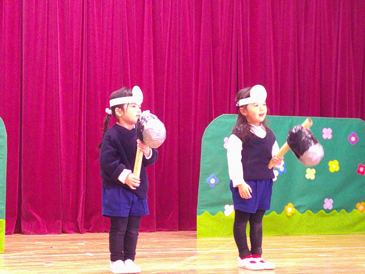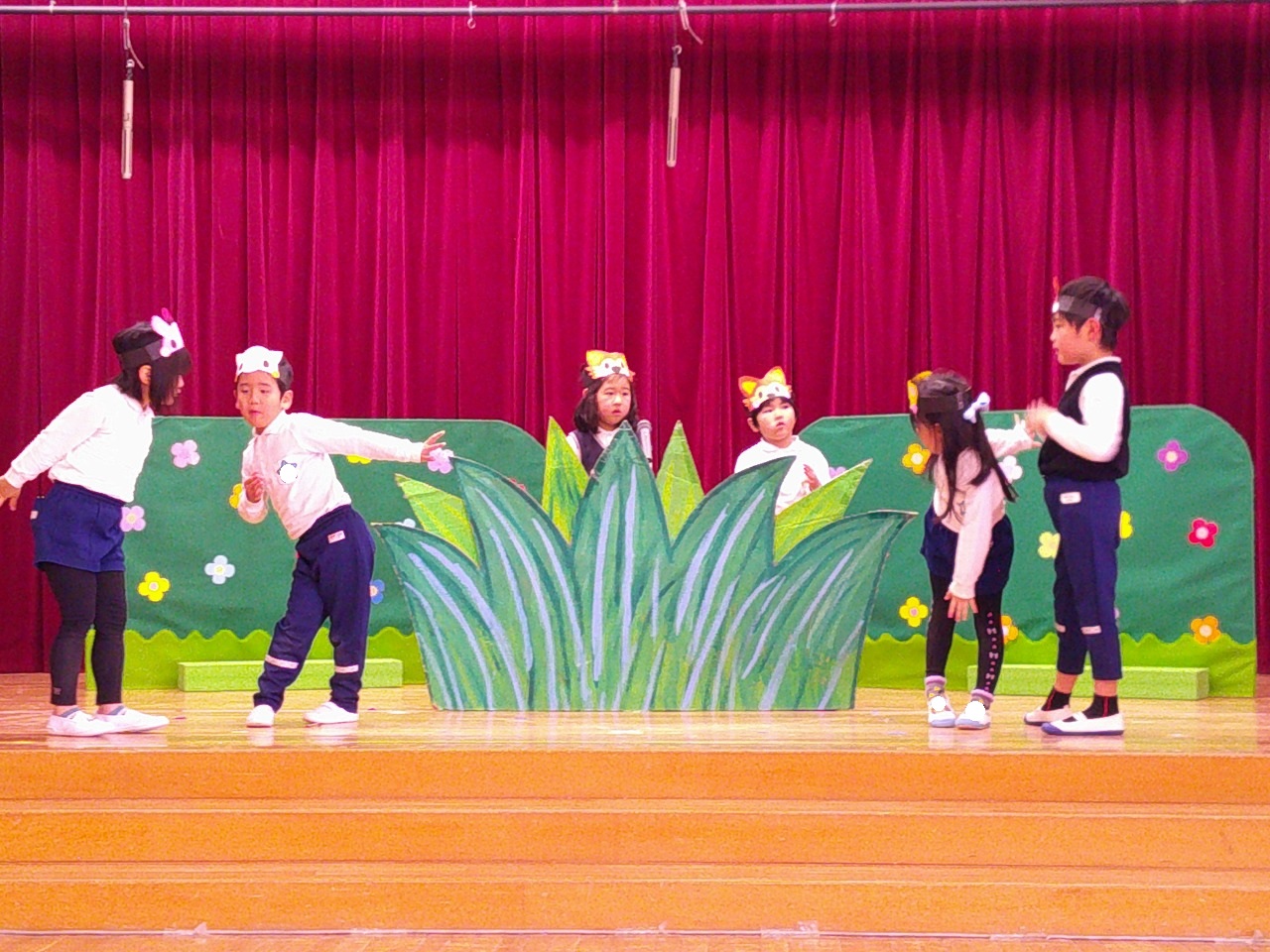 来週のお遊戯会に向けて、劇の見せ合いっこをしたり、お友だちに拍手お送ったりしています。