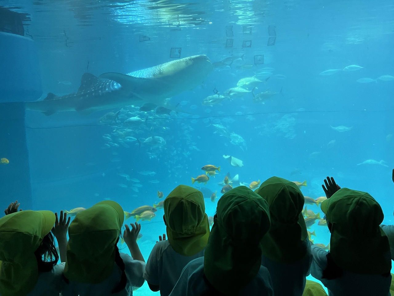 今日の避難訓練では、堺市南消防署から消防士さんも来てくださって火事の時の避難訓練をしました。