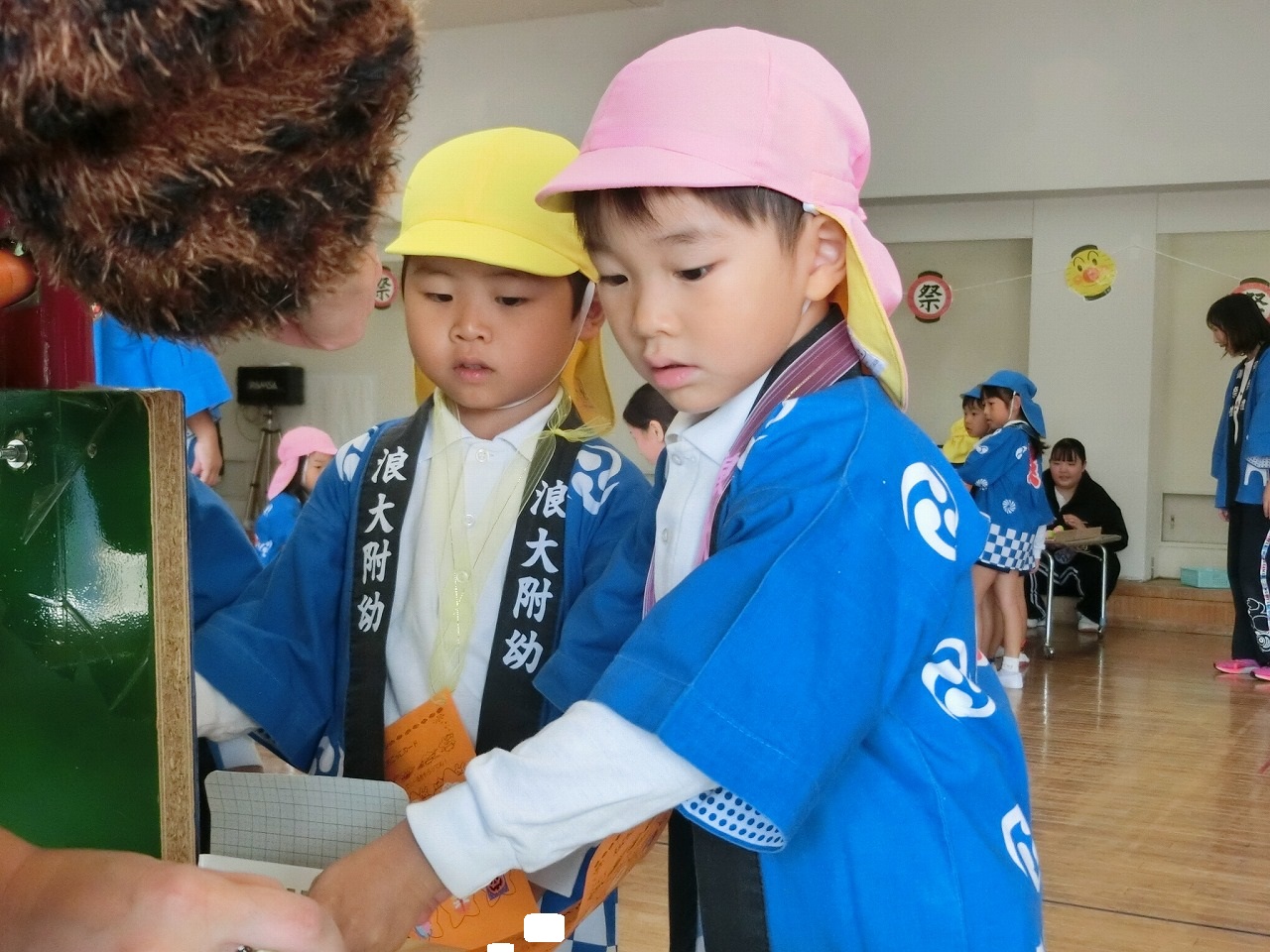 訓練の後、クラスに戻ってからは地震と火事についての紙芝居を見ました。