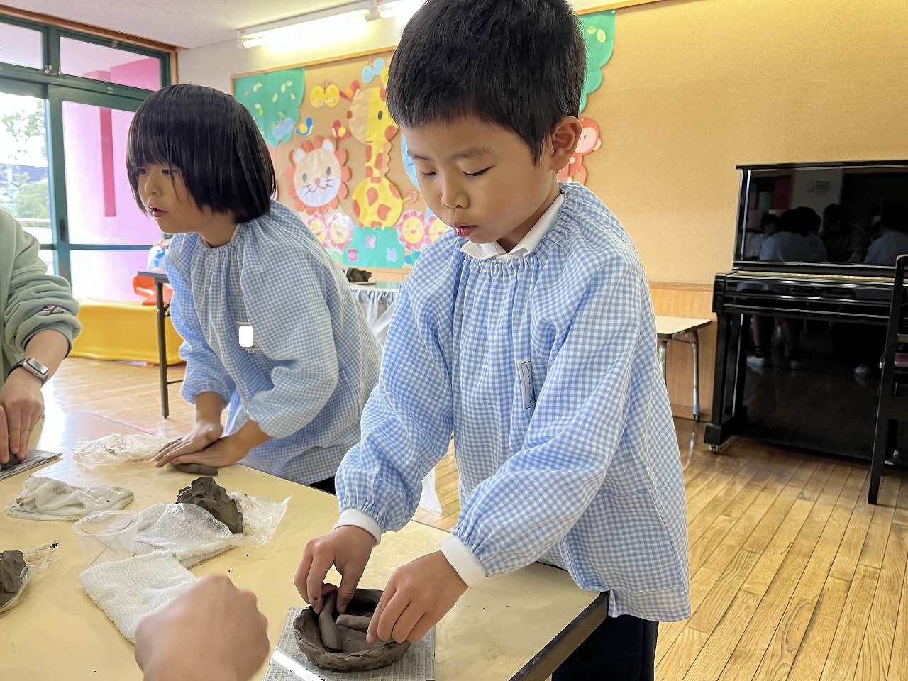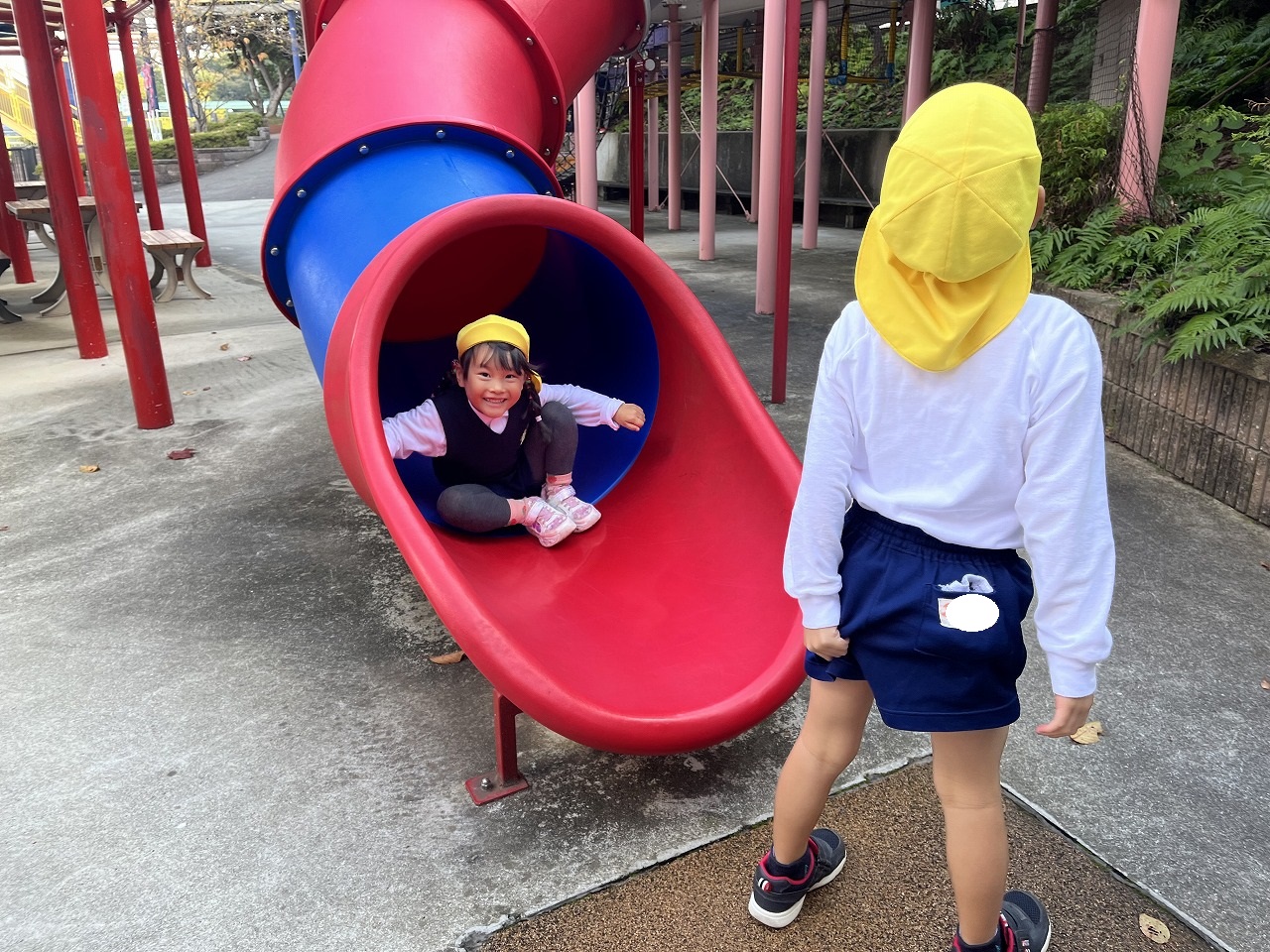 「ハンカチを口に当ててください」と話すと、みんなさっとハンカチを取り出して先生にさっとついて行き、上手に避難することができました。