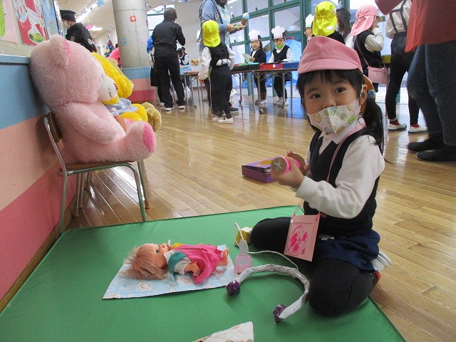 おうちの人とのふれあい遊びをしたり、大好きなケロちゃんと写真を撮ったり、「3匹のヤギのガラガラドン」のお話や、ペープサートを見たり、とても楽しい時間を過ごしました。