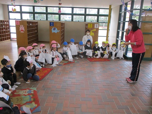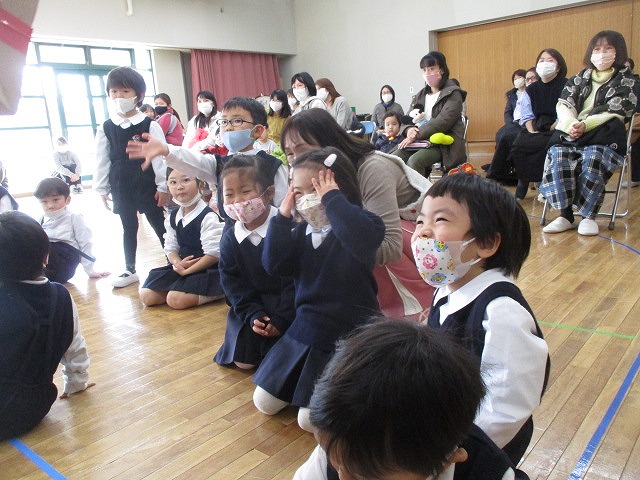 「アイアイ」や「さんぽ」など、みんながよく知ってる歌が始まると手拍子をしながら一緒に歌ったり、「すきすき大好き赤ずきん」のお話を楽しんだり、とても盛り上がっていました。