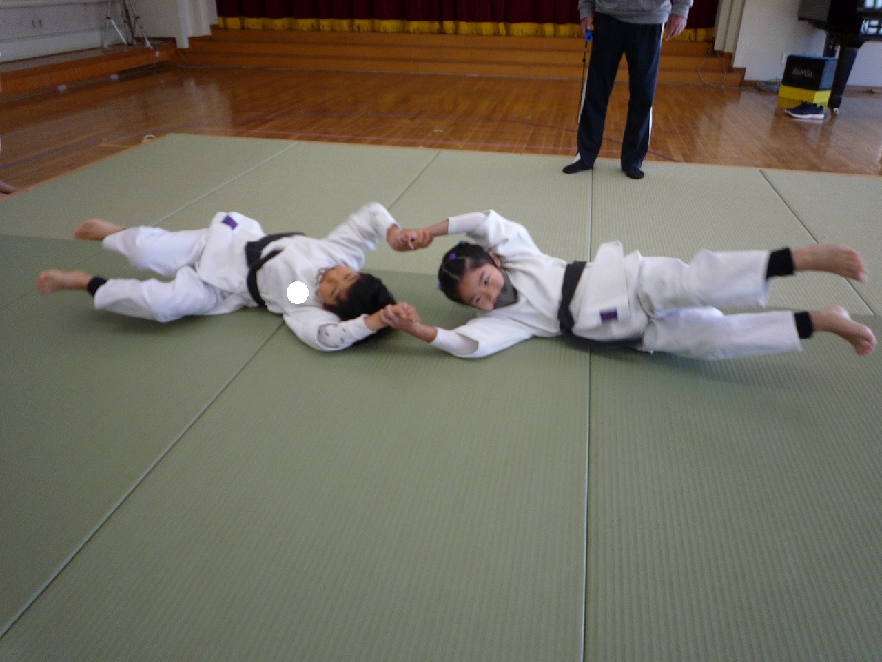 柔道部のお姉さんと組み手をしたり、「大根抜き」をしたり、子どもたちは笑顔いっぱいで大盛り上がりでした!