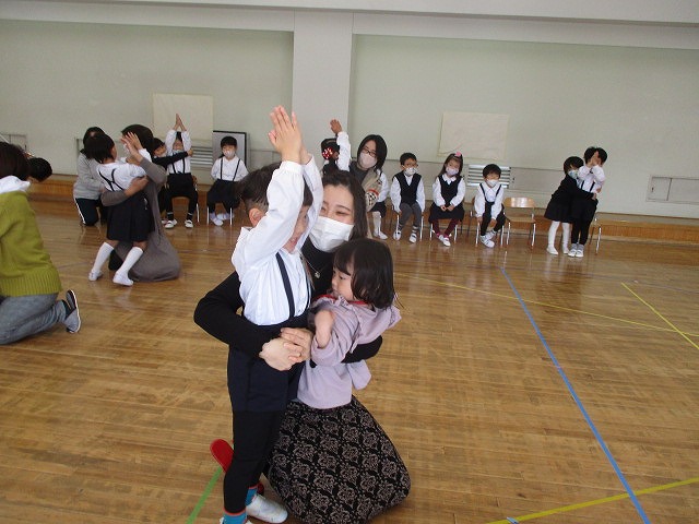 英語で数字を数えたり、イラストを見て英語で答えたり、色々な音楽に合わせて体を動かしながら、楽しく指導してくださいました。