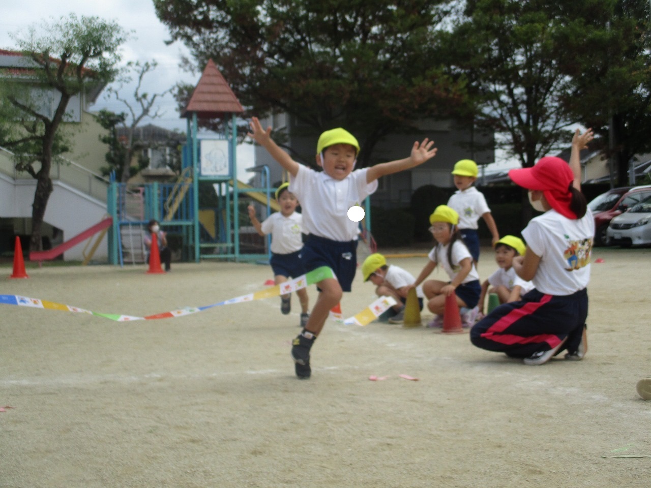 そして、みんなの大好きな「大根抜き」、いつもと何だか違う・・・⁉ なんと!今日は、みんながつながって長~い「大根抜き」をしました。お友だちの足をしっかり握って踏ん張る子どもたち、ペアさんと力を合わせて引っ張る子どもたち、2人一度に抜けた時は大盛り上がりでした!