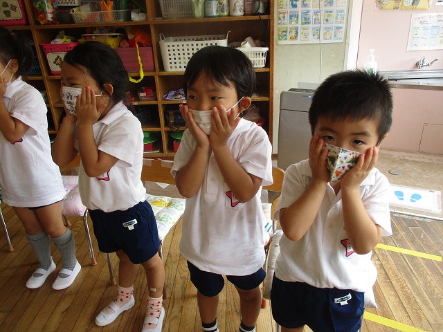 他にも、みんなの大好きなケロちゃんが遊びに来てくれたり、楽器当てクイズや、先生たちによる楽器演奏、乾先生によるお話「くれよんのくろくん」、ペープサート「すずめがサンバ」を見たりして、楽しいことが盛りだくさんなお誕生日会になりました。