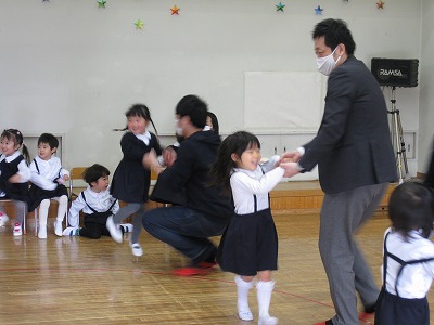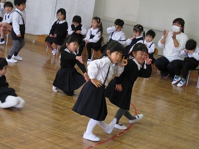 長いスポンジや積み木、佐藤先生のお手製アイテムを使ってバランスをとったり、瞬発力をつけたり・・・楽しい活動に大喜びの子どもたちでした。最後の「大根抜き」では、先生たちにも抜かれない強い子ども大根がいっぱい!おうちの人にもたくさん応援して貰って大満足の柔道参観でした!