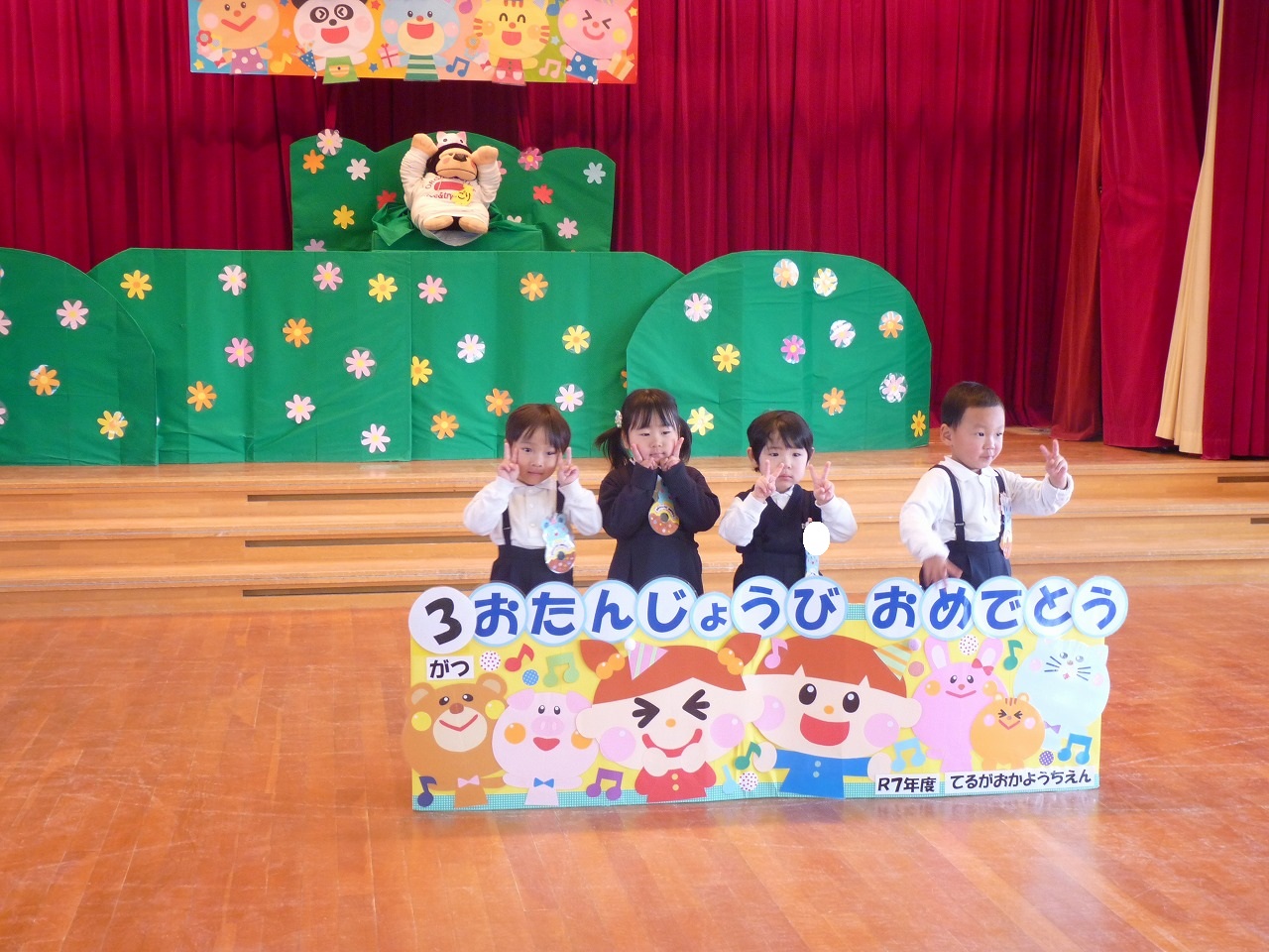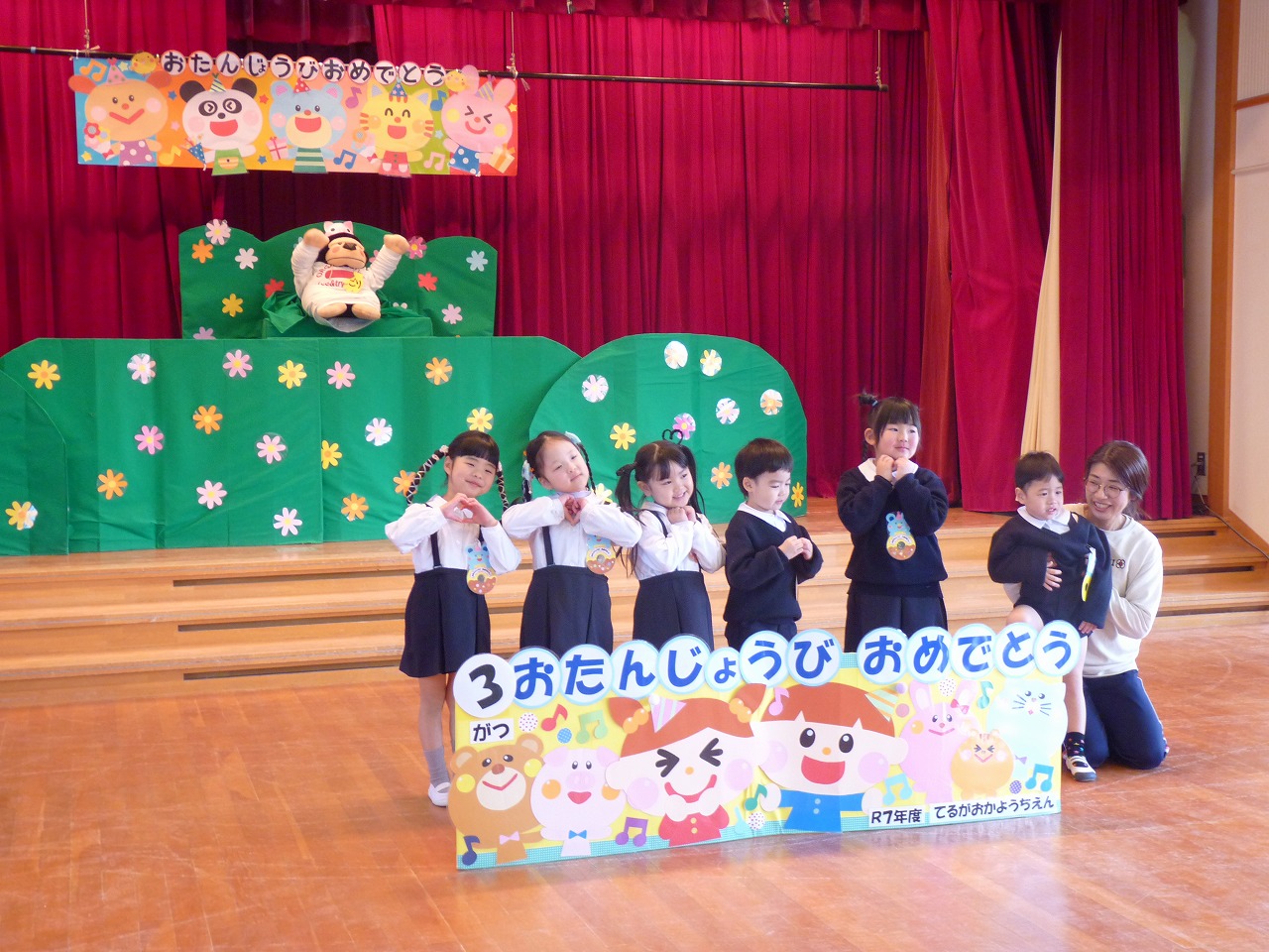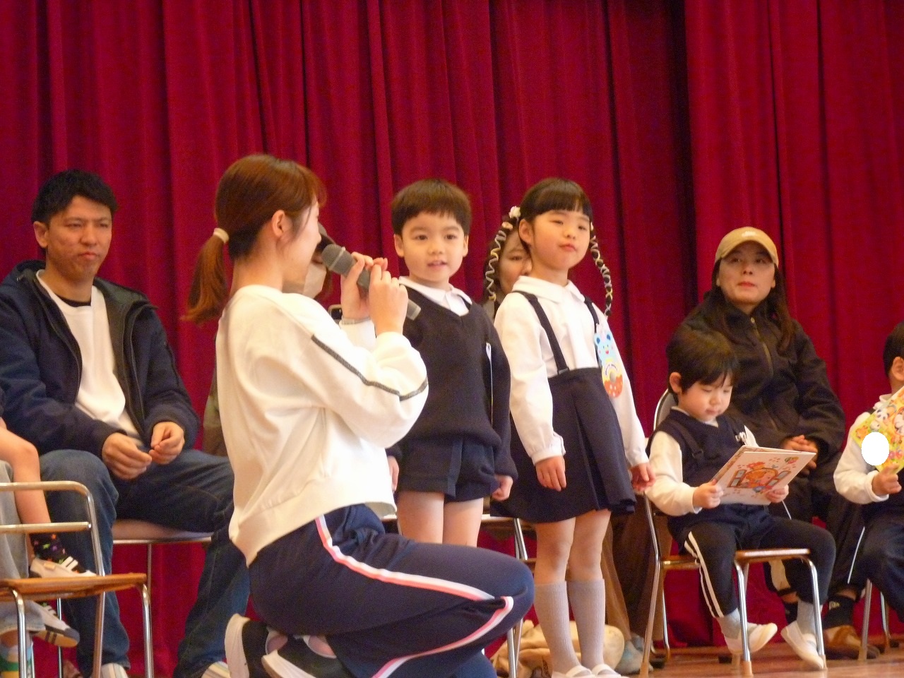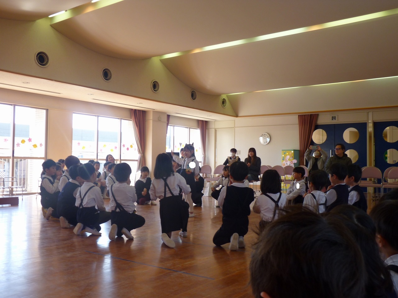 年少さんは「スペシャル!きみのたんじょうび」年中さんは「パプリカ」年長さんは「はじまり」のお遊戯のプレゼントをしました。