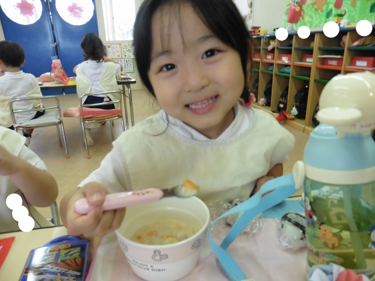 美味しくできたクリームシチューを嬉しそうに食べていた子どもたちでした!