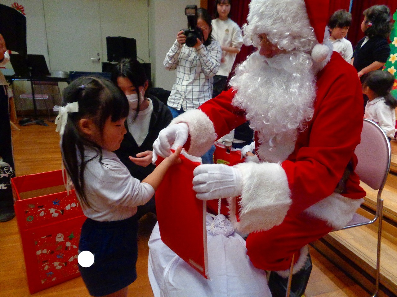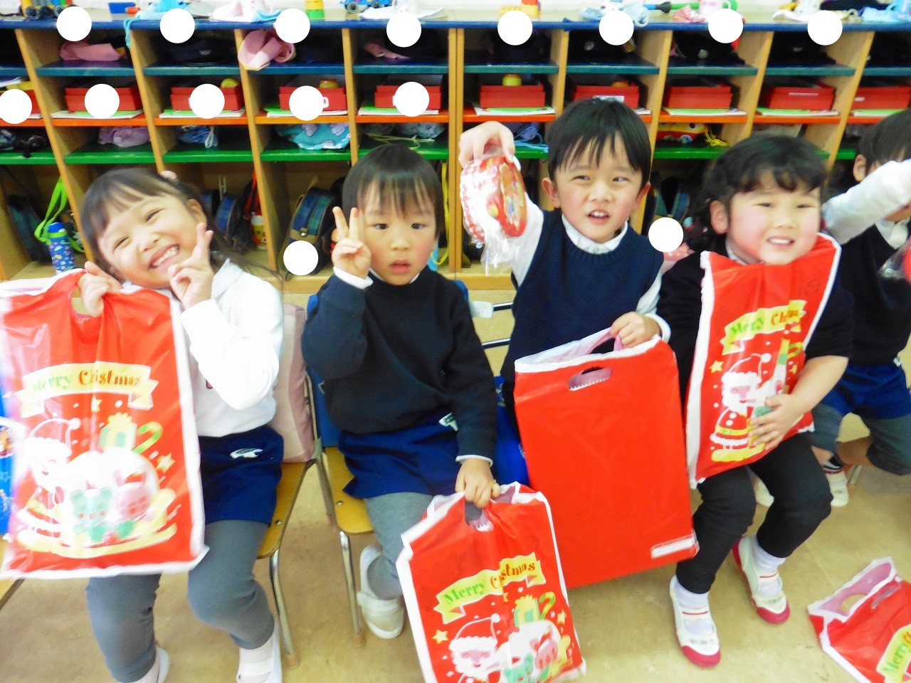 照ヶ丘幼稚園にサンタさんが来てくれて、素敵なプレゼントをもらいました。
