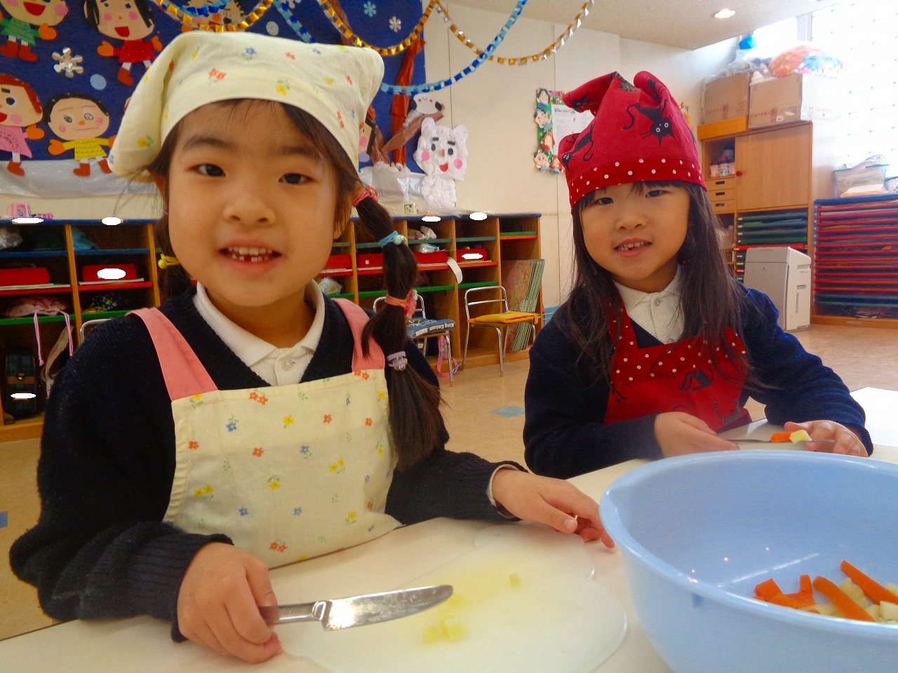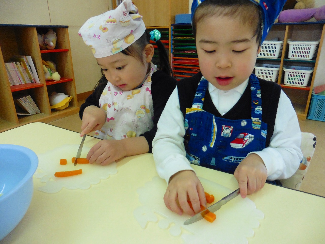 一生懸命、野菜を切って完成を楽しみにしていた子ども達!