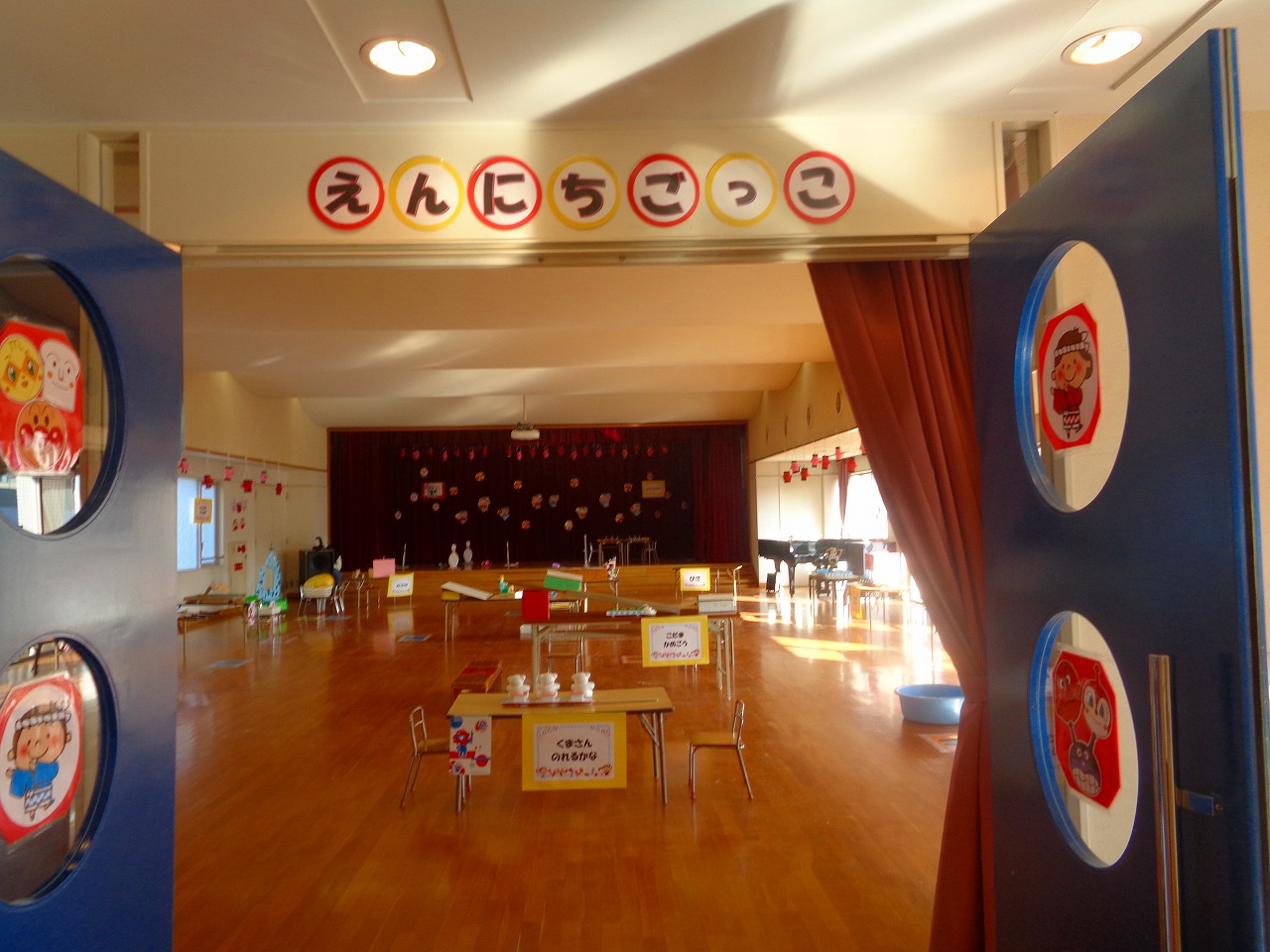 園庭で「アンパンマン音頭」を踊り、ホールではたくさんの手作りゲームを楽しみました。